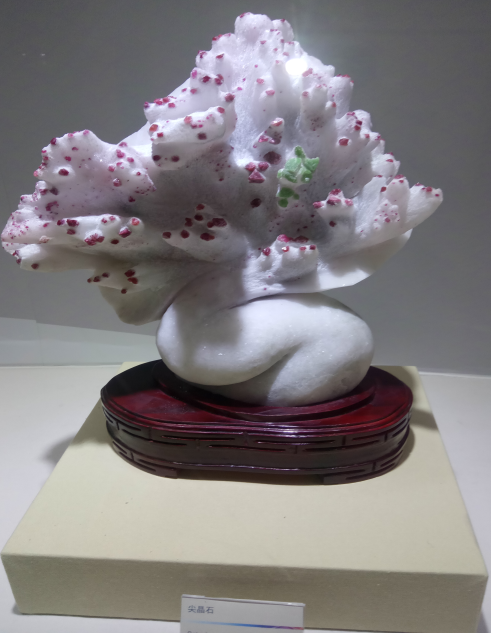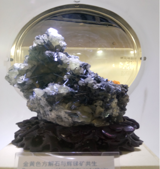 展厅中展示的标本琳琅满目,有各式各样的水晶、风沙作用形成的碳酸钙沙漠玫瑰、形态各异的孔雀石雕刻、娇艳可人的尖晶石花朵、放射状的辉锑矿晶体、片片相叠的镜铁矿、蜂窝状的氧化铁等等。它们无一不向我们展示着地质之美与自然之美。