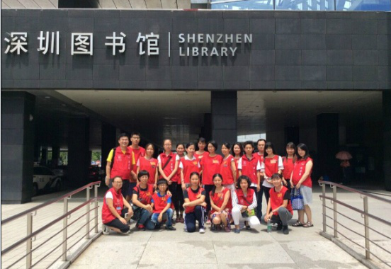 2015年7月18日星期六,我司组织志愿者前往深圳市图书馆开展义工活动。下午1点整,志愿者们头顶烈日,身着鲜红马甲准时集结在图书馆的门口,神采奕奕,整装待发。